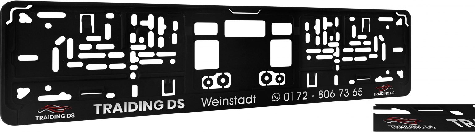 • Nach der Bestellung Ihrer gewünschten Druckartikel senden Sie bitte Ihren Drucktext, Logos, Grafiken an unsere Grafikabteilung info@sp-autokennzeichenhalter.com. Sie erhalten dann von uns einen digitalen Korrekturabzug per E-Mail, damit Sie uns ggf. Änderungswünsche mitteilen können und das Produkt Ihren Wünschen entsprechend bedruckt wird.
